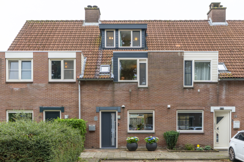 Lichte 4-kamer EENGEZINSWONING (op zolder nog extra kamers mogelijk), gelegen op een royale hoekkavel met voor-, zij- en een goed bemeten achtertuin, stenen berging en een handige achterom.